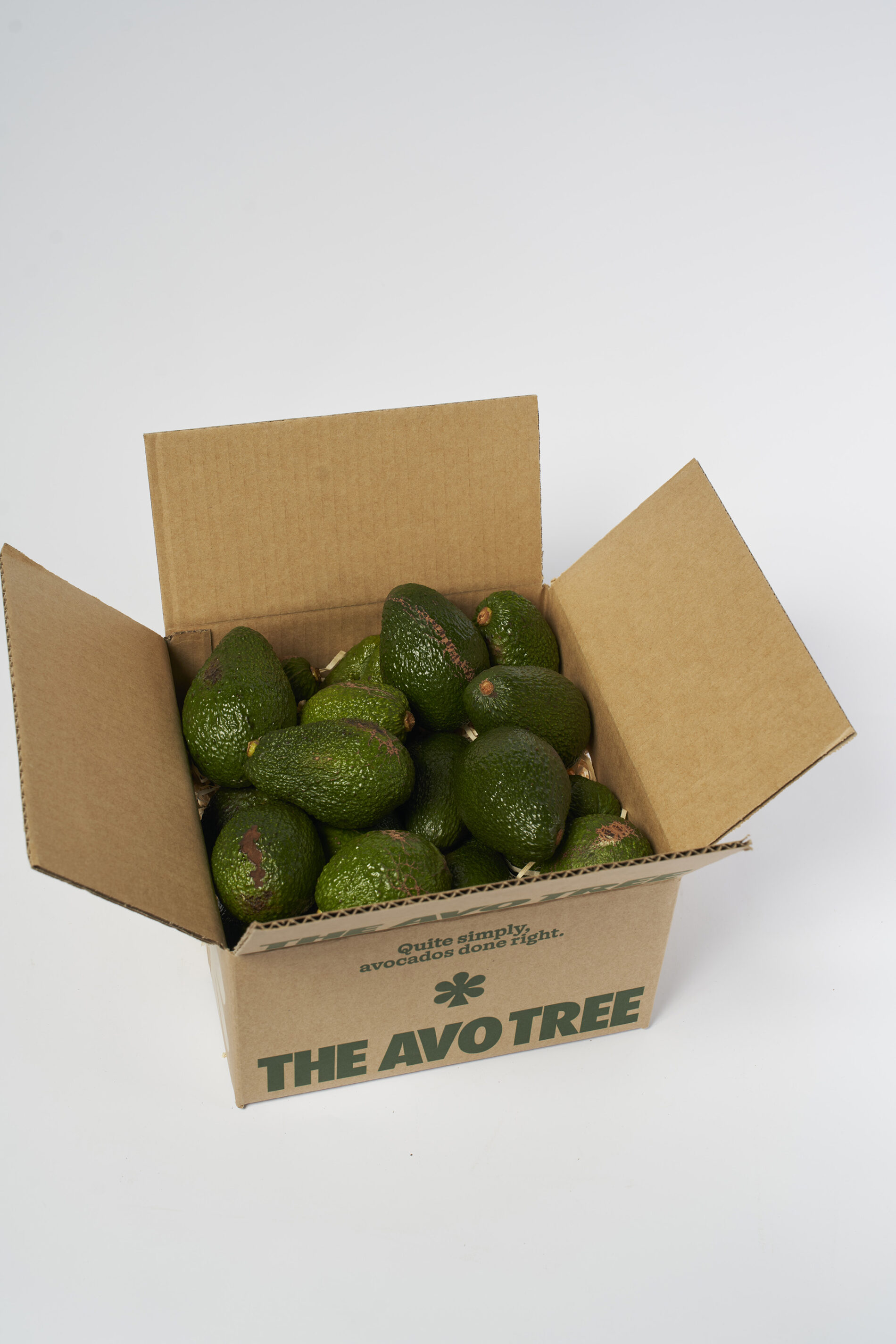 Each box can contain between 18 jumbo and 32 small Second Grade Hass Avocados (approx 4.9kg) Imperfect on the outside, delicious on the inside.